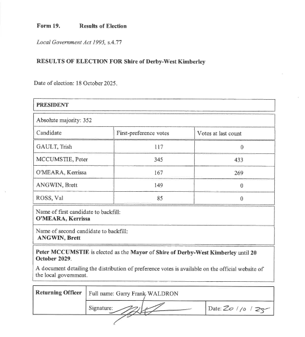 President: Peter McCumstie - 4 Year Term | 345 Votes