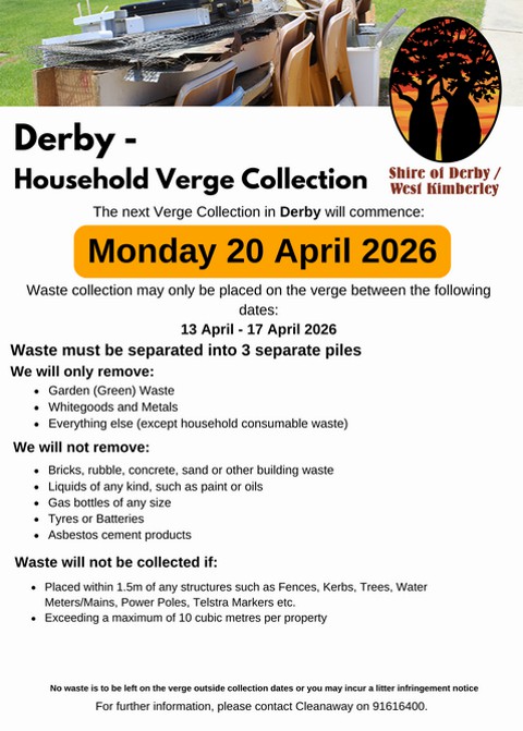 Waste must be placed out only between 13 April and 17 April 2026 and sorted into three piles: garden waste, whitegoods/metals and everything else.